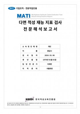 MATI® 성인 일반·대학생 19세부터 모든 성인 일반 및 대학생을 대상으로 사용하는 검사지 입니다.검사 문항…