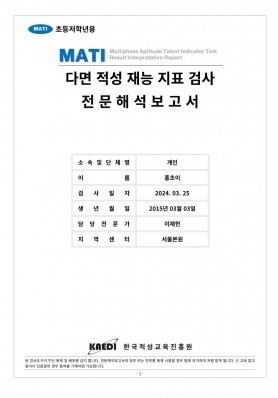 MATI® 초등고 MATI 초등고 검사도구 개발 준비중
